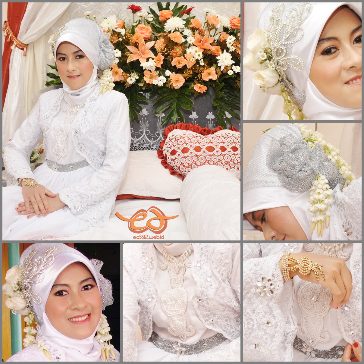 Nggak cuma soal kerudung aja yang sepertinya mengancam reputasi si ibu perias. Hihihi.. masalah aksesoris dan gaya make up juga. Katanya, dalam acara seperti pernikahan itu sang ratu haruslah terlihat paling menyilaukan di antara yang lain (eh nggak gitu sih bahasanya.. tapi intinya harus paling guenjreng, paling wow, paling cantik, dsb.) sehingga aksesoris dan make up-nya musti yang kelihatan dari jarak jauh, sedangkan kalo ngikutin maunya saya hal itu bisa sulit diwujudkan. Pertama, aksesoris buat kepala / kerudung modern milik perias pilihannya terbatas, warnanya silver yang cenderung kalem dan bakalan udah kepakai untuk akad, jadi untuk resepsi / walimah hanya tersisa ‘mahkota-mahkota’ warna emas yang lebih ‘menyala’. Mungkin saya aja yang katro sih karena kekinian atau nggaknya kan nggak ada hubungannya sama warna, apalagi menurut perias aksesoris yang ingin ia sematkan di kepala saya itu model terbaru, cuma saya kok lihatnya warna emas itu identik dengan printilan kostum adat Jawa :roll:. Kedua, dengan syarat “make up minimalis” berarti ada resiko kurang kelihatan ber-make up ketika dilihat dari jauh atau wajah saya terlihat pucat. Lagi-lagi, bisa dibayangkan, jika hal-hal itu terjadi, bisa aja ada bisik-bisik orang yang menilai periasnya nggak jago, manten-nya kasihan ‘tenggelam’ di antara dandanan tamu lain.. Mom yang pernah belajar tata rias juga memahami hal itu sehingga dalam kali ini condong ke perias. Hehehe.