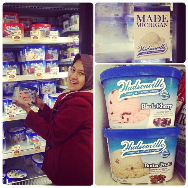 #ea5512 story: “Do you eat dairy products?”, the nurse asked me in the last check-up | “Yes” (in my mind: at least I’m struggling to drink two glasses of milk and eat cheese / yoghurt / butter every day) | “Remember that you need at least FOUR SERVINGS each day”, she said | what??? as that much? one serving is about “a cup of milk” or “a slice of cheese” and my daily intake is still less than needed even though I’ve noticed that calcium + vitamin D are highly required this time to help fetal’s strong bones and teeth grow. So, here comes a week when two huge scoops of Washtenaw Dairy’s delicious ice cream and four scoops of another ice cream in Ahmo’s Gyro couldn’t satisfy my craving! #IceCream is the only interesting dairy product for me so far. Lucky us, this “Buy 1 Get 1 Free” of #Hudsonville promo in #Busch saved us from feeling the pinch of purchasing more ice cream out there :)) Important thing: it’s #MadeinMichigan. Let’s support local products! 😀 AnnArbor #Michigan