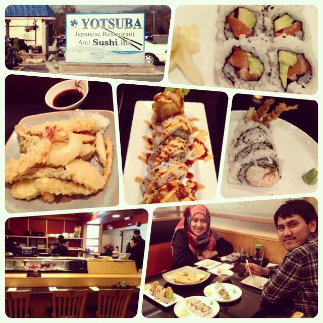 Being in doubt to try since moving here, #ea5512 finally went to #JapaneseRestaurant in #AnnArbor :)) This #Yotsuba isn’t bad, esp. if you have coupon, but don’t come there in the new year’s eve bcs the chefs might be too busy to finely prepare your sushi. Like ours, all that came out was just messy rolls :)) The taste of their meals absolutely can’t be as typical as it tastes in Japan, but again, not bad to try. We loved both their #tempura and #sushiroll.