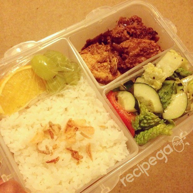 Hubby’s #bento two days ago: white rice, orange and grape, Paracha Chicken (#indianfood) and Mediterranian Salad (#lebanesesalad or #syriansalad) with homemade dressing (olive oil, italian seasoning >> should use dried mint, garlic, salt pepper) – kemarin formasinya jg sama tapi #paracha-nya diganti terik ayam tahu tempe dan disiapin sendiri jadi nggak kefoto 😀 #recipega Posted by @egadioniputri via Instagram