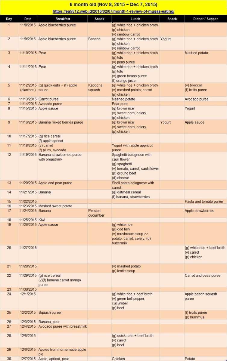6months – baby food menu – by Mama Musa Next Published April 15, 2016 at 931 × 1482 in Month 1 Review of Musa’s Eating Share this:TweetShare on TumblrLike Loading...