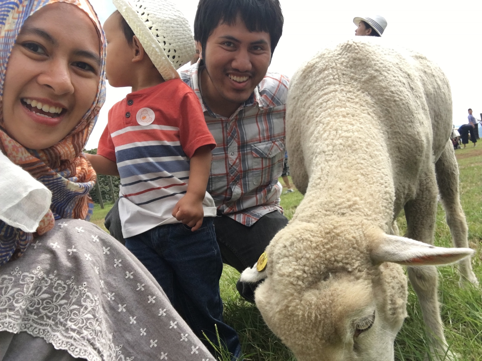 Note this! Soon after entering the gate and handling the pamphlet, check the schedule for the animals’ performance, so you can plan your trip inside farm and won’t miss any show. We didn’t know about it and wasted our time to look around the restaurant, then suddenly Aisar told me to give up and go to the bus stop quickly to catch the sheep parade. He just realized there’s a parade when on a whim to read the pamphlet. We caught the bus, but were not lucky enough for the parade T_T. However, since we came right after the parade ended, we got the chance to pet the sheep before they returned to their house.