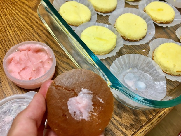 In this second trial of mont blanc, I actually tried to make the roll cake, but it’s failed (cracking again! ugh haven’t conquered this cake challenge), so I just cut it in discs, and decorate them with cream and the maron paste. And oh, since I carried it to a party and needed the cakes to stay still, I did extra work by putting small amount of sugar frosting at the bottom of cake discs and cake liners. See my drop-proof testing video in the end of this post to see how it held the formation quite well!