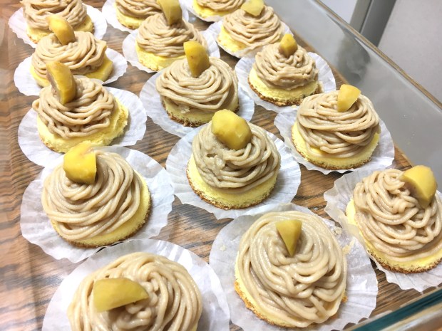 Excuse me for messy piping. If you know that I dropped the piping bag full of chesnut puree to the tray in the half way of decoration work. 😑
