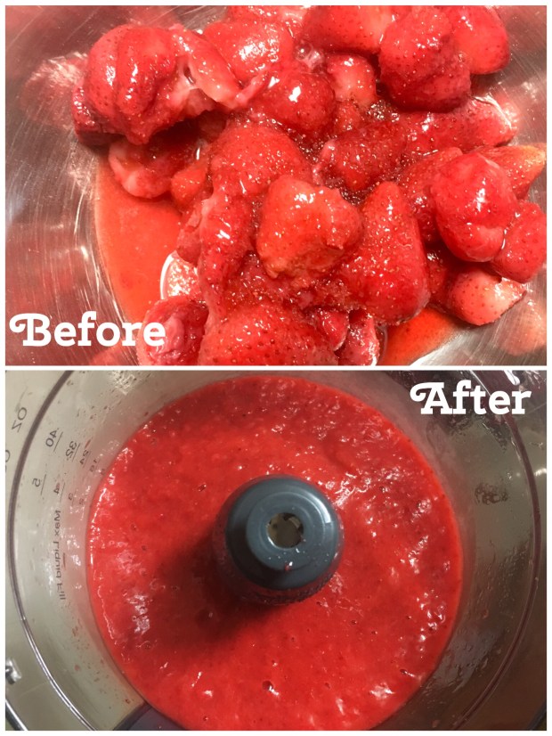 1 cups frozen strawberries, thawed and pureed