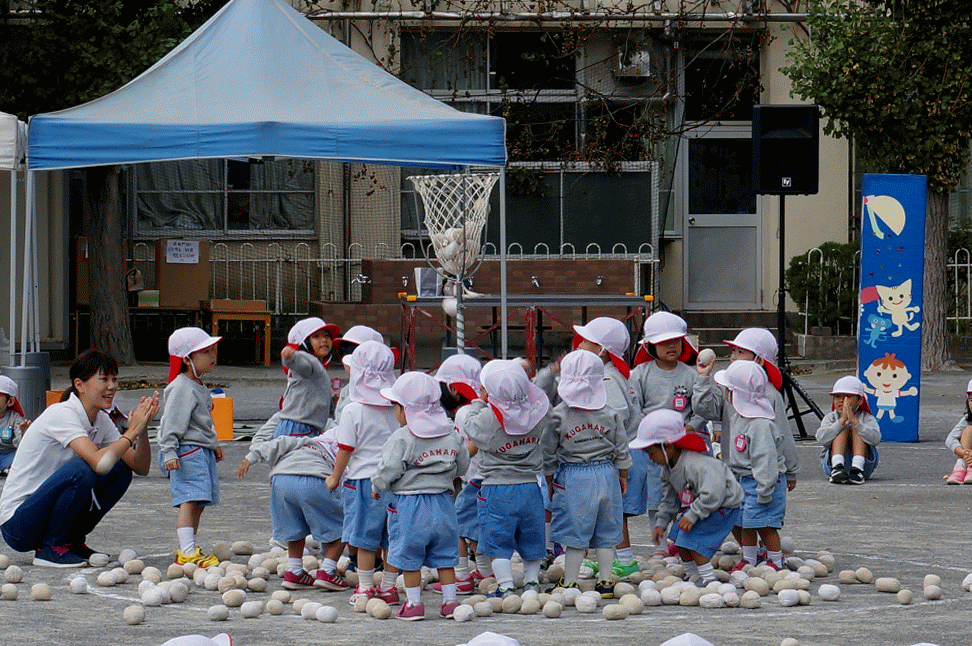 Agenda pertama acara inti setelah opening adalah tamaire (玉入れ: memasukkan bola). Musa nggak pernah cerita tentang ada atau enggaknya latihan buat sesi ini. Yang dia tampilkan di rumah cuma joget aja. Wkwk.. jadi benar-benar kejutan pas lihat ada lempar-lempar bola gemas oleh bocah-bocah kicik ini. Netnya sengaja dibikin tinggi jadi mereka harus lompat-lompat kaya main basket dan banyaknya bola yang masuk dilombakan antar kelas. Alhamdulillah kali ini Musa mulai gambaru ikut andil meski tak seagresif teman-temannya.