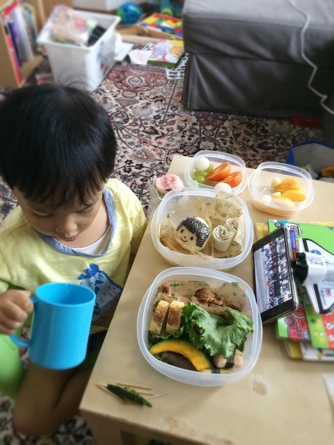 Di rumah, siapa sangka Musa kembali ceria dan makan bento lumayan banyak.. hihi, demam panggung juga mungkin doi di lokasi