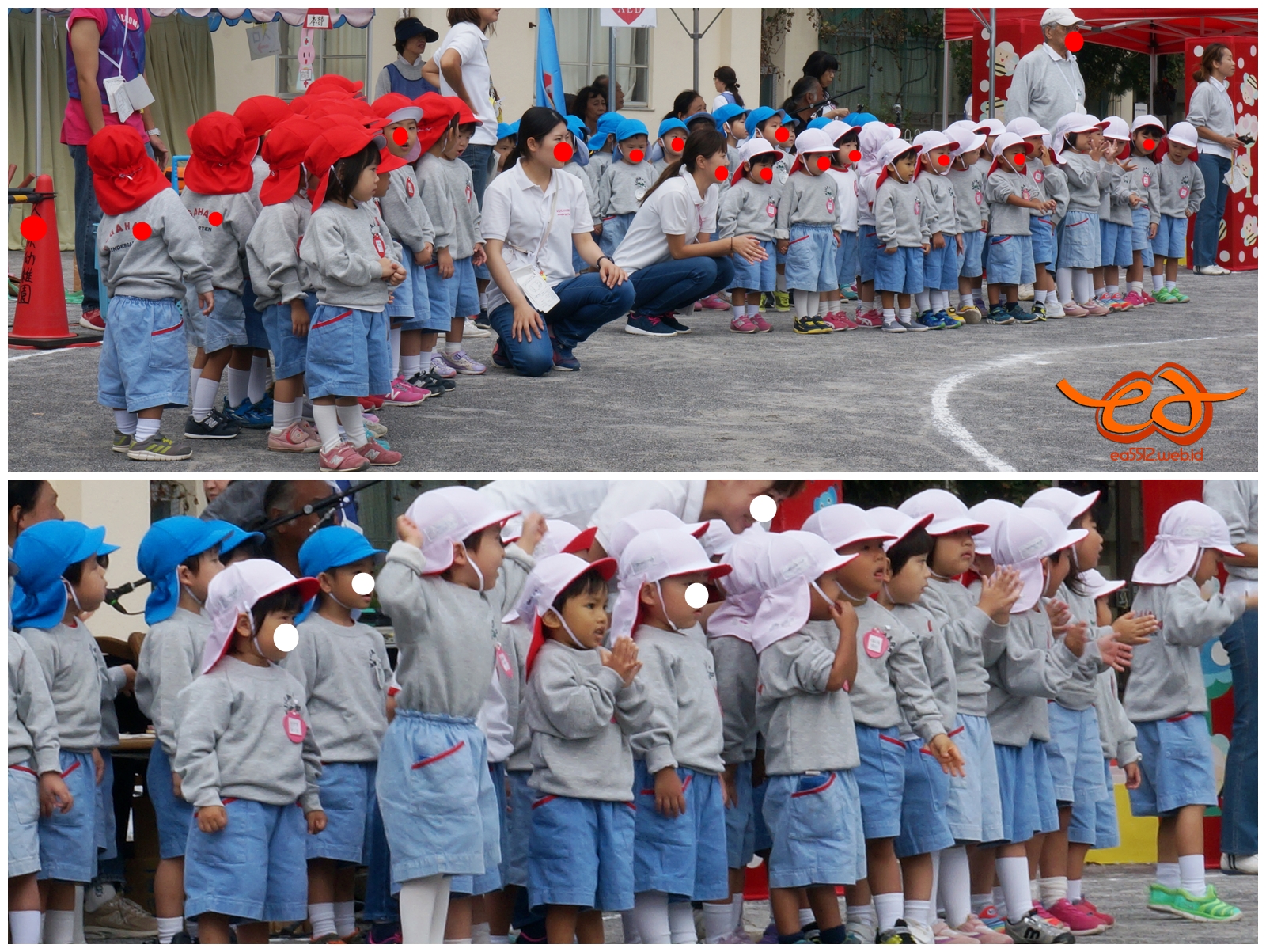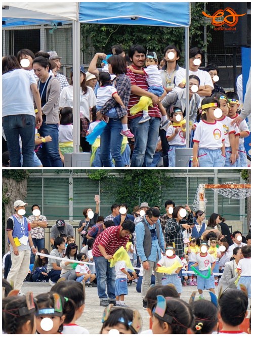 Setelah dibuka, semua anak digiring bersama kelas masing-masing ke spot-spot yang telah disediakan di tepi lapangan di luar arena undokai. Kadang kala mereka masuk ruangan, kadang kala hanya bersiap di bawah tenda. Berbekal susunan acara di booklet yang sudah diterima ortu beberapa hari sebelumnya, kami harus pindah-pindah untuk ambil foto dan video antara tempat duduk dan area lain yang lebih dekat dengan lokasi Musa beraksi. Agak susah sih karena mesti misi-misi nyempil di tengah penonton yang emang udah di situ posisi duduknya. Mode zoom in pun terpaksa aktif terus, tapi dengan adanya fotografer yang bisa ambil foto anak dari dekat jadi lebih tenang walaupun nanti hasil fotonya harus beli dan cuma dapat versi cetak