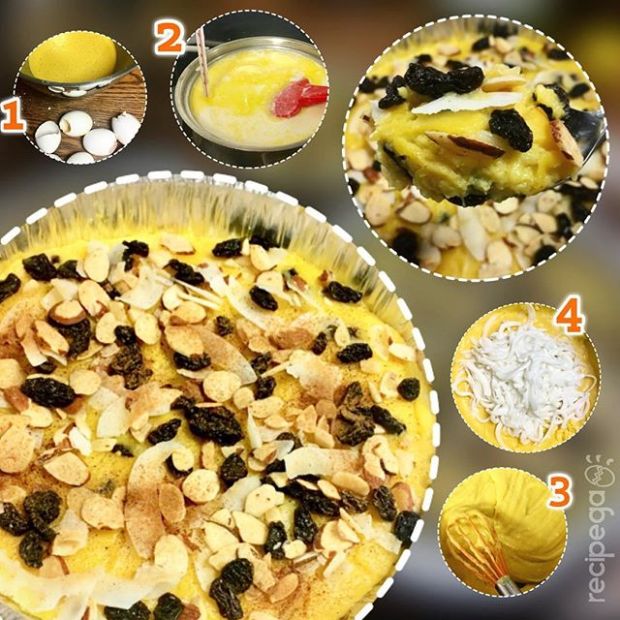 Posted from egadioniputri‘s InstagramNever ate #klappertart, but I tried to make it yesterday (2/10) to use up SIX leftover egg yolks. It turned out simply creamy #custard (#カスタード) mixed with the #coconuts meat (ココナッツ身) and sliced almond + raisin sprinkles😅 #recipega . .