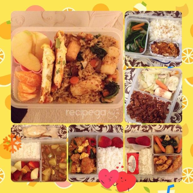 Simple bento with autumn colors (only one container!) for the boy who’s not in a good mood about school these days 😂 #recipega … Menu 👩🍳 🍙 Onigirazu (sandwich-like onigiri) with tuna and mayonnaise filling 🎃 Kabocha (Japanese pumpkin), chicken sausage, and edamame in spaghetti skewer 🥚 Fried egg 🥕 Steamed carrot 🍑 Kaki (Japanese persimmon) and jelly in the tiny container … 📝 Today’s RANT .. Drama sakit-sakitan anak TK ini belum berakhir, tapi karena “konstipasi” dan “batuk sisa-sisa asma” bukan sakit yg berbahaya DAN udah dikonfirmasi dari tes di RS bahwa virus ditubuhnya negatif, plus kambuhnya penyakit super random (terutama lagi suspected saat ia sedang stres), nggak mungkin dong bolos terus-terusan, jadi pagi ini pun doi gambare berangkat ke sekolah diantar Papa karena Mama harus check-up adek di RS 🙃 Semoga nggak harus jemput lebih cepet kaya kemarin 😅.